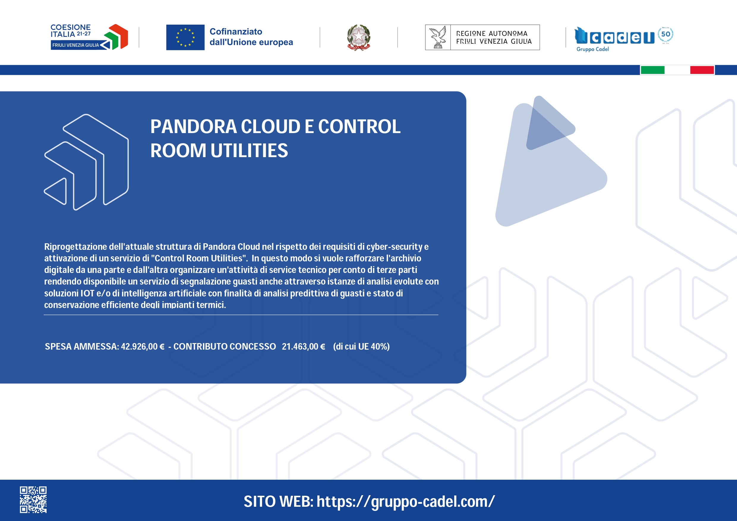 Con estrema soddisfazione comunichiamo l’avvio del nostro progetto della “Control Room” e la ristrutturazione del Pandora Cloud. Grazie alla Regione Friuli-Venezia-Giulia e al supporto della Camera di Commercio che ci ha coadiuvato nelle attività di presentazione dei documenti per partecipare al Bando del Fondo Europeo di Sviluppo Regionale 2021-2027, siamo orgogliosi di annunciare che ci è stata notificata la concessione dell’aiuto economico necessario per poter sviluppare un progetto innovativo e all’avanguardia per supportare in modo proattivo i nostri clienti e non.